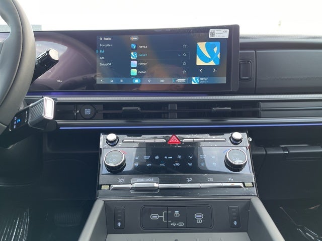 - Radio: AM/FM/HD Bose Premium Audio System -inc: 12 speakers including subwoofer, external amplifier, 12.3" wide touchscreen, wireless Apple CarPlay and Android Auto, Bluetooth® hands-free w/wireless audio streaming, dynamic voice recognition, USB connectivity, SiriusXM, wifi hotspot, Blue Link connected car system, navigation system including traffic flow w/incident data via HD Radio (HERE), OTA updates and rear seat quiet mode